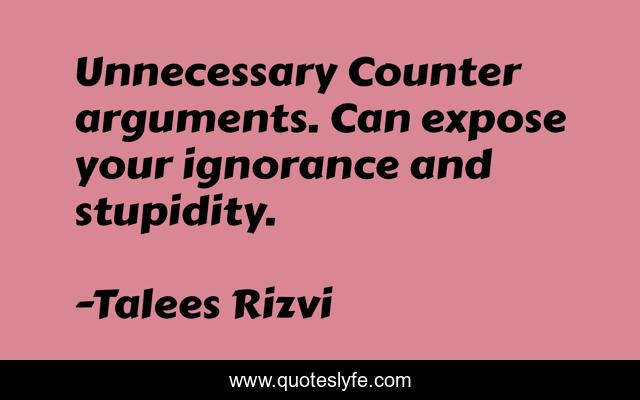 This page presents the quote "Unnecessary Counter arguments. Can expose your ignorance and stupidity.". Author of this quote is Talees Rizvi. This quote is about arguements, ignorance, arguement,.