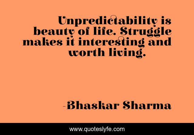 "Bhaskar Sharma Quotes." Quoteslyfe.com, 2025. Sat. 06 Dec. 2025. <https://www.quoteslyfe.com/quote/Unpredictability-is-beauty-of-life-Struggle-makes-130258>.