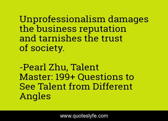 "Pearl Zhu, Talent Master: 199+ Questions to See Talent from Different Angles Quotes." Quoteslyfe.com, 2025. Sat. 06 Dec. 2025. <https://www.quoteslyfe.com/quote/Unprofessionalism-damages-the-business-reputation-and-tarnishes-230234>.