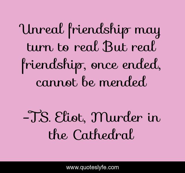 "T.S. Eliot, Murder in the Cathedral Quotes." Quoteslyfe.com, 2025. Mon. 08 Dec. 2025. <https://www.quoteslyfe.com/quote/Unreal-friendship-may-turn-to-real-But-50051>.