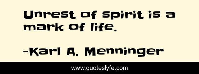 This page presents the quote "Unrest of spirit is a mark of life.". Author of this quote is Karl A. Menninger. This quote is about unrest, spirit, mark,.