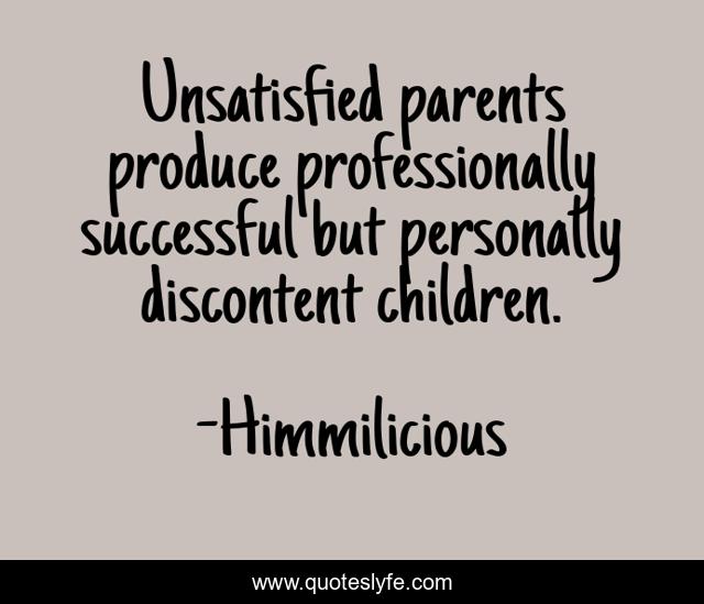 This page presents the quote "Unsatisfied parents produce professionally successful but personally discontent children.". Author of this quote is Himmilicious. This quote is about parenting, children, overambition,.