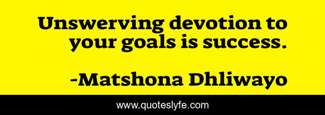 "Matshona Dhliwayo Quotes." Quoteslyfe.com, 2025. Sun. 07 Dec. 2025. <https://www.quoteslyfe.com/quote/Unswerving-devotion-to-your-goals-is-success-109142>.