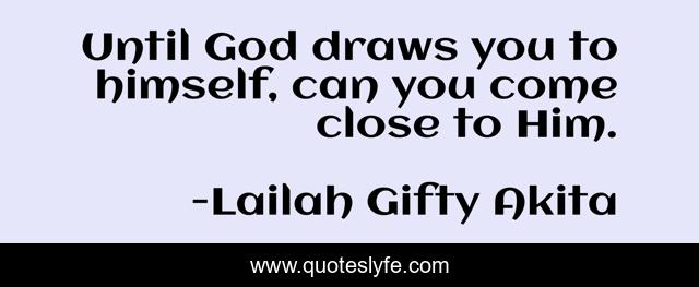 This page presents the quote "Until God draws you to himself, can you come close to Him.". Author of this quote is Lailah Gifty Akita. This quote is about faith, christian, god, seek-god, chosen-ones, salvation, grace,.