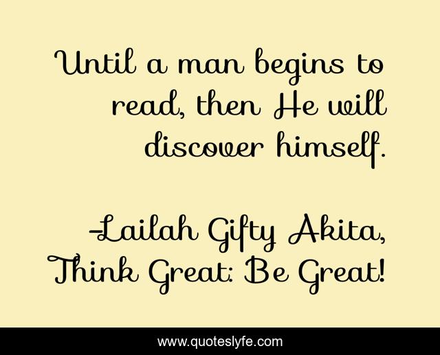 "Lailah Gifty Akita, Think Great: Be Great! Quotes." Quoteslyfe.com, 2025. Fri. 05 Dec. 2025. <https://www.quoteslyfe.com/quote/Until-a-man-begins-to-read-then-95134>.