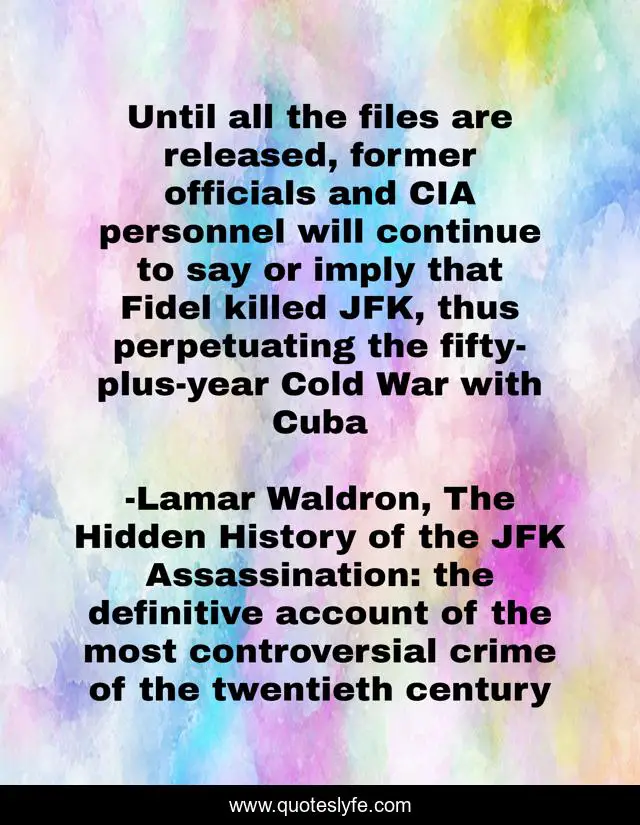 "Lamar Waldron, The Hidden History of the JFK Assassination: the definitive account of the most controversial crime of the twentieth century Quotes." Quoteslyfe.com, 2025. Fri. 05 Dec. 2025. <https://www.quoteslyfe.com/quote/Until-all-the-files-are-released-former-146608>.