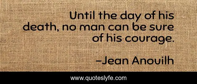 This page presents the quote "Until the day of his death, no man can be sure of his courage.". Author of this quote is Jean Anouilh. This quote is about death, day, man,.