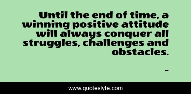 This page presents the quote "Until the end of time, a winning positive attitude will always conquer all struggles, challenges and obstacles.". Author of this quote is . This quote is about conquers, a-winning-attitude, edmond-mbiaka, challenge, obstacles, struggles, a-winning-positive-attitude, challenges, obstacle,.