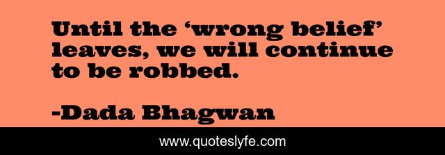 This page presents the quote "Until the ‘wrong belief’ leaves, we will continue to be robbed.". Author of this quote is Dada Bhagwan. This quote is about spiritual, right-belief, robber, wrong-belief,.