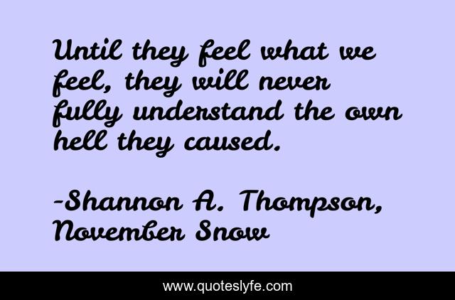 "Shannon A. Thompson, November Snow Quotes." Quoteslyfe.com, 2025. Sat. 06 Dec. 2025. <https://www.quoteslyfe.com/quote/Until-they-feel-what-we-feel-they-163783>.