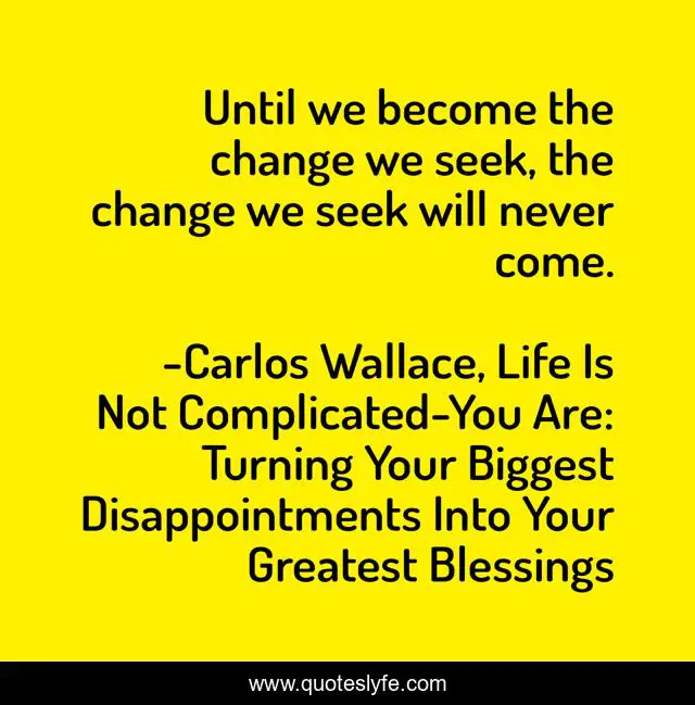 "Carlos Wallace, Life Is Not Complicated-You Are: Turning Your Biggest Disappointments Into Your Greatest Blessings Quotes." Quoteslyfe.com, 2025. Mon. 08 Dec. 2025. <https://www.quoteslyfe.com/quote/Until-we-become-the-change-we-seek-258752>.