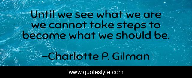 This page presents the quote "Until we see what we are we cannot take steps to become what we should be.". Author of this quote is Charlotte P. Gilman. This quote is about self, knowledge,.