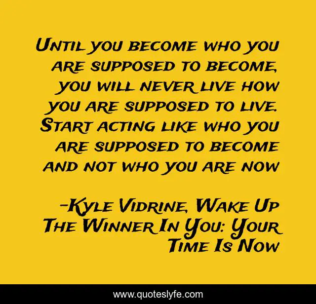 This page presents the quote "Until you become who you are supposed to become, you will never live how you are supposed to live. Start acting like who you are supposed to become and not who you are now". Author of this quote is Kyle Vidrine, Wake Up The Winner In You: Your Time Is Now. This quote is about motivation, kyle-vidrine, personal-growth, positive, motivational-for-women, motivational, confidence, kyle-the-dream-vidrine, optimistic,.