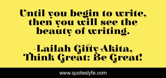 "Lailah Gifty Akita, Think Great: Be Great! Quotes." Quoteslyfe.com, 2025. Fri. 05 Dec. 2025. <https://www.quoteslyfe.com/quote/Until-you-begin-to-write-then-you-34699>.
