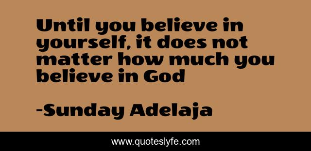This page presents the quote "Until you believe in yourself, it does not matter how much you believe in God". Author of this quote is Sunday Adelaja. This quote is about love, people, money, principles, selflessness, employment, worship, impact, living,.