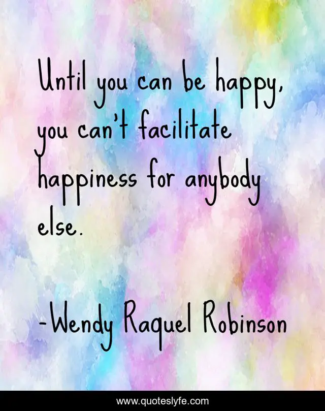 This page presents the quote "Until you can be happy, you can't facilitate happiness for anybody else.". Author of this quote is Wendy Raquel Robinson. This quote is about be happy, happy,.