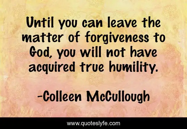 This page presents the quote "Until you can leave the matter of forgiveness to God, you will not have acquired true humility.". Author of this quote is Colleen McCullough. This quote is about forgiveness, forgive, truth,.