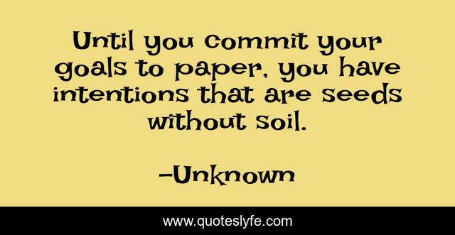 This page presents the quote "Until you commit your goals to paper, you have intentions that are seeds without soil.". Author of this quote is Unknown. This quote is about lifetime-version, motivate, inspire, action-handbook, motivational-inspirational, inspirational-living, motivational, motivational-living, motivation,.