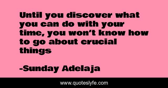 This page presents the quote "Until you discover what you can do with your time, you won’t know how to go about crucial things". Author of this quote is Sunday Adelaja. This quote is about life, blessing, finance, money, work, time-management, job, joblessness, purpose,.