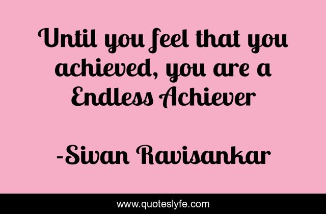 This page presents the quote "Until you feel that you achieved, you are a Endless Achiever". Author of this quote is Sivan Ravisankar. .