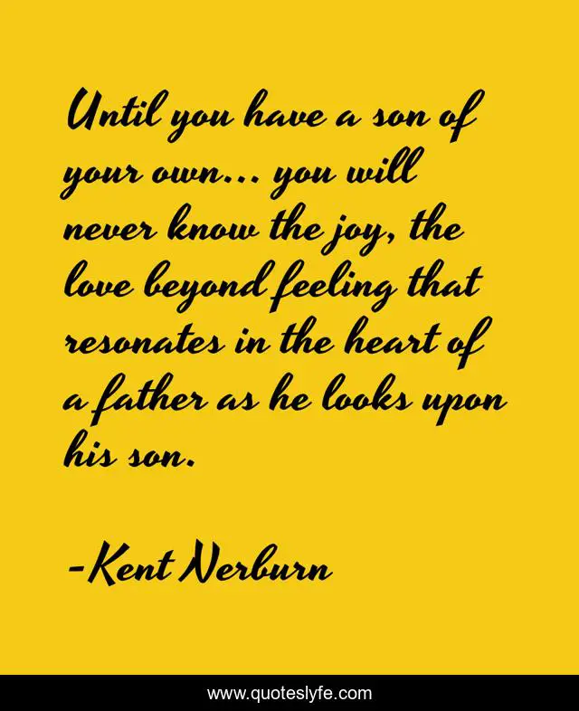 This page presents the quote "Until you have a son of your own... you will never know the joy, the love beyond feeling that resonates in the heart of a father as he looks upon his son.". Author of this quote is Kent Nerburn. This quote is about love, father, affection, son,.