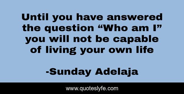 This page presents the quote "Until you have answered the question “Who am I” you will not be capable of living your own life". Author of this quote is Sunday Adelaja. This quote is about self-identity, purpose, identity,.
