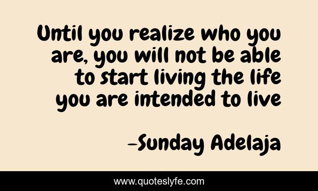 This page presents the quote "Until you realize who you are, you will not be able to start living the life you are intended to live". Author of this quote is Sunday Adelaja. This quote is about self-realization, life, purpose,.