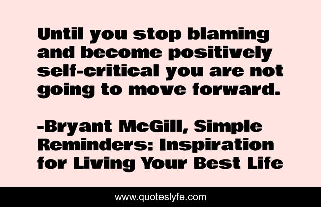 This page presents the quote "Until you stop blaming and become positively self-critical you are not going to move forward.". Author of this quote is Bryant McGill, Simple Reminders: Inspiration for Living Your Best Life. This quote is about blame, criticism, positivity, growth, move-forward,.