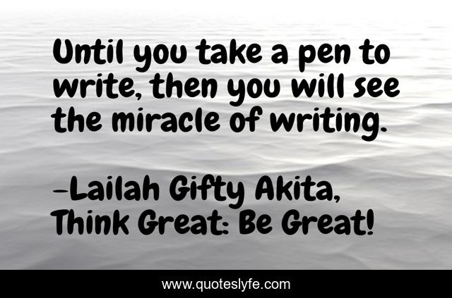 "Lailah Gifty Akita, Think Great: Be Great! Quotes." Quoteslyfe.com, 2025. Sun. 07 Dec. 2025. <https://www.quoteslyfe.com/quote/Until-you-take-a-pen-to-write-34598>.