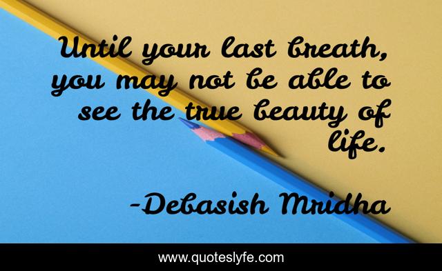 This page presents the quote "Until your last breath, you may not be able to see the true beauty of life.". Author of this quote is Debasish Mridha. This quote is about life, dying, beauty, philosophy, debasish-mridha, last-breath, quotes, inspirational, true-beauty-of-life,.