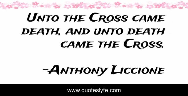 This page presents the quote "Unto the Cross came death, and unto death came the Cross.". Author of this quote is Anthony Liccione. This quote is about love, jesus, trust, wages-of-sin-is-death, death, god, christianity, sin, hope,.