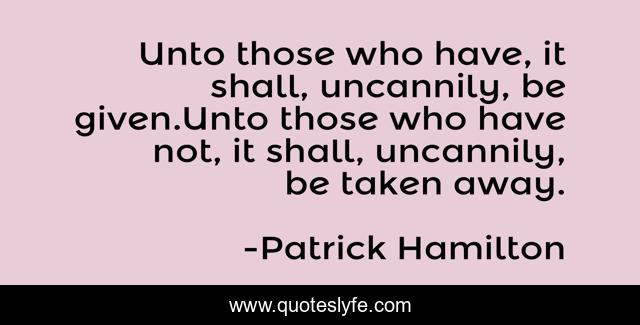 "Patrick Hamilton Quotes." Quoteslyfe.com, 2025. Sat. 06 Dec. 2025. <https://www.quoteslyfe.com/quote/Unto-those-who-have-it-shall-uncannily-153750>.
