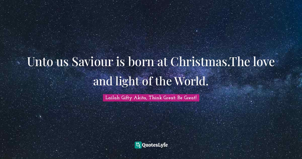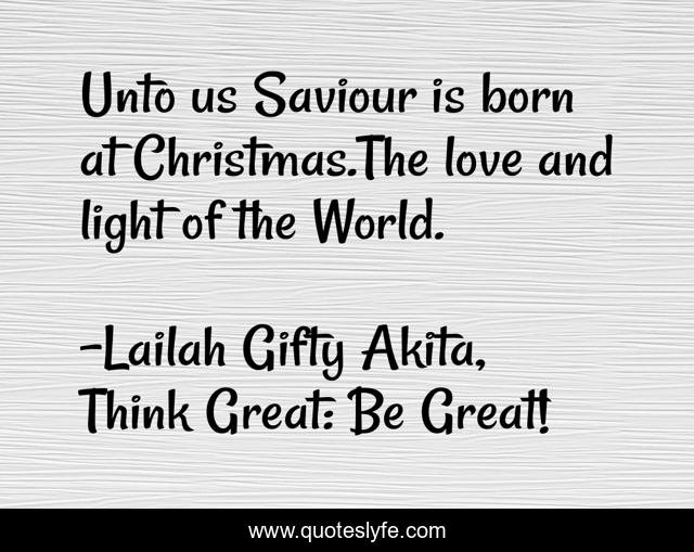 "Lailah Gifty Akita, Think Great: Be Great! Quotes." Quoteslyfe.com, 2026. Wed. 14 Jan. 2026. <https://www.quoteslyfe.com/quote/Unto-us-Saviour-is-born-at-Christmas-121394>.