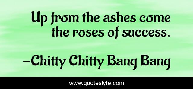 This page presents the quote "Up from the ashes come the roses of success.". Author of this quote is Chitty Chitty Bang Bang. This quote is about inspriation, encouragement,.