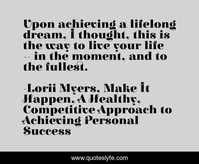 "Lorii Myers, Make It Happen, A Healthy, Competitive Approach to Achieving Personal Success Quotes." Quoteslyfe.com, 2025. Tue. 09 Dec. 2025. <https://www.quoteslyfe.com/quote/Upon-achieving-a-lifelong-dream-I-thought-37387>.