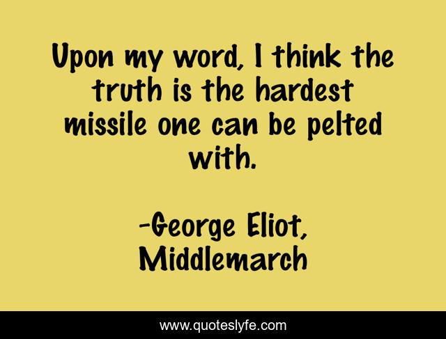 This page presents the quote "Upon my word, I think the truth is the hardest missile one can be pelted with.". Author of this quote is George Eliot, Middlemarch. .