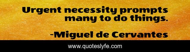 This page presents the quote "Urgent necessity prompts many to do things.". Author of this quote is Miguel de Cervantes. .