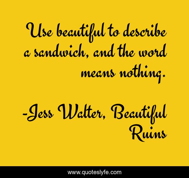"Jess Walter, Beautiful Ruins Quotes." Quoteslyfe.com, 2025. Sat. 06 Dec. 2025. <https://www.quoteslyfe.com/quote/Use-beautiful-to-describe-a-sandwich-and-251486>.