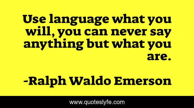 This page presents the quote "Use language what you will, you can never say anything but what you are.". Author of this quote is Ralph Waldo Emerson. .