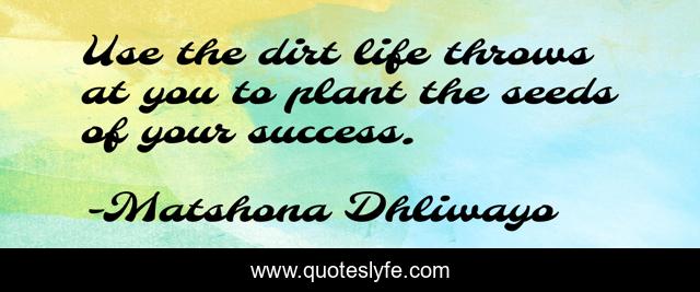 "Matshona Dhliwayo Quotes." Quoteslyfe.com, 2025. Mon. 08 Dec. 2025. <https://www.quoteslyfe.com/quote/Use-the-dirt-life-throws-at-you-108959>.