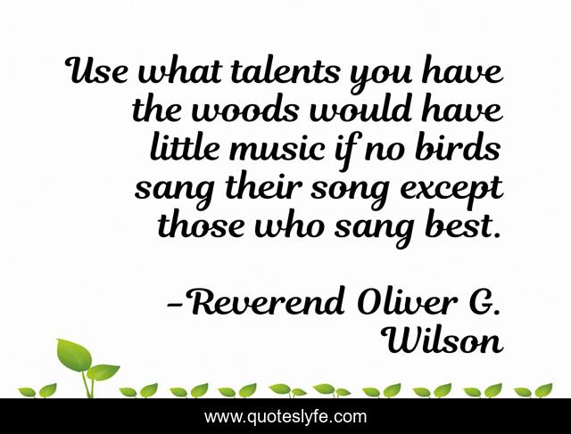 This page presents the quote "Use what talents you have the woods would have little music if no birds sang their song except those who sang best.". Author of this quote is Reverend Oliver G. Wilson. .