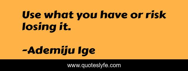 "Ademiju Ige Quotes." Quoteslyfe.com, 2025. Fri. 05 Dec. 2025. <https://www.quoteslyfe.com/quote/Use-what-you-have-or-risk-losing-98943>.