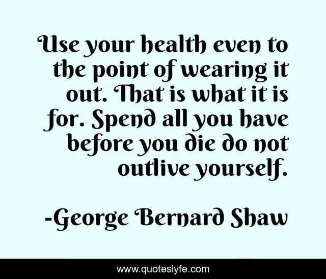 This page presents the quote "Use your health even to the point of wearing it out. That is what it is for. Spend all you have before you die do not outlive yourself.". Author of this quote is George Bernard Shaw. .