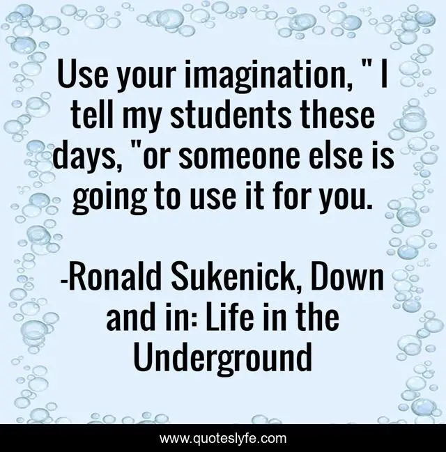 "Ronald Sukenick, Down and in: Life in the Underground Quotes." Quoteslyfe.com, 2025. Sat. 06 Dec. 2025. <https://www.quoteslyfe.com/quote/Use-your-imagination-I-tell-my-students-126442>.