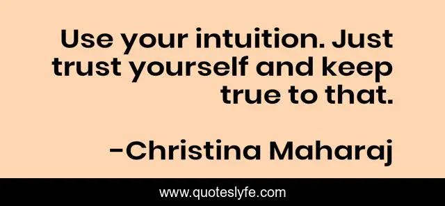 This page presents the quote "Use your intuition. Just trust yourself and keep true to that.". Author of this quote is Christina Maharaj. This quote is about enthusiasm, intuition, inspirational,.