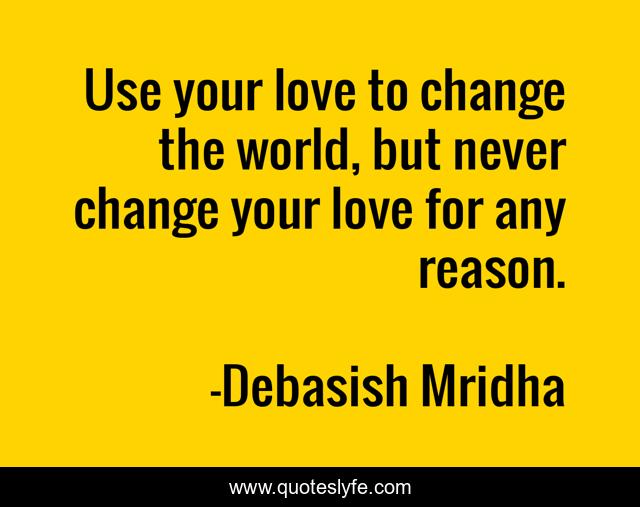 This page presents the quote "Use your love to change the world, but never change your love for any reason.". Author of this quote is Debasish Mridha. This quote is about change-the-world, love, quotes, philosophy, debasish-mridha, life-wisdom, inspirational, enthusiasm, debasish-mridha-m-d,.