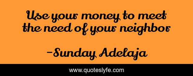 This page presents the quote "Use your money to meet the need of your neighbor". Author of this quote is Sunday Adelaja. This quote is about need, money, neighbor,.