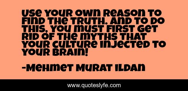 This page presents the quote "Use your own reason to find the truth. And to do this, you must first get rid of the myths that your culture injected to your brain!". Author of this quote is Mehmet Murat ildan. .