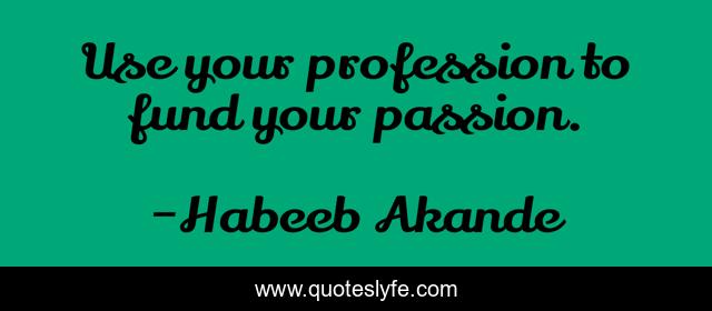 This page presents the quote "Use your profession to fund your passion.". Author of this quote is Habeeb Akande. This quote is about talent, finance, business, money, work, profession, entrepreneurship, passion, creative-people,.