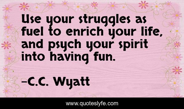 This page presents the quote "Use your struggles as fuel to enrich your life, and psych your spirit into having fun.". Author of this quote is C.C. Wyatt. .